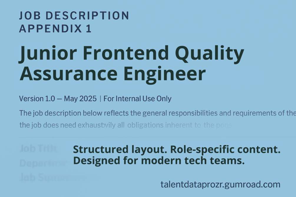 This Job Description – Junior Frontend QA Engineer Template is tailored for QA professionals starting their careers in frontend testing roles with automation expectations.
